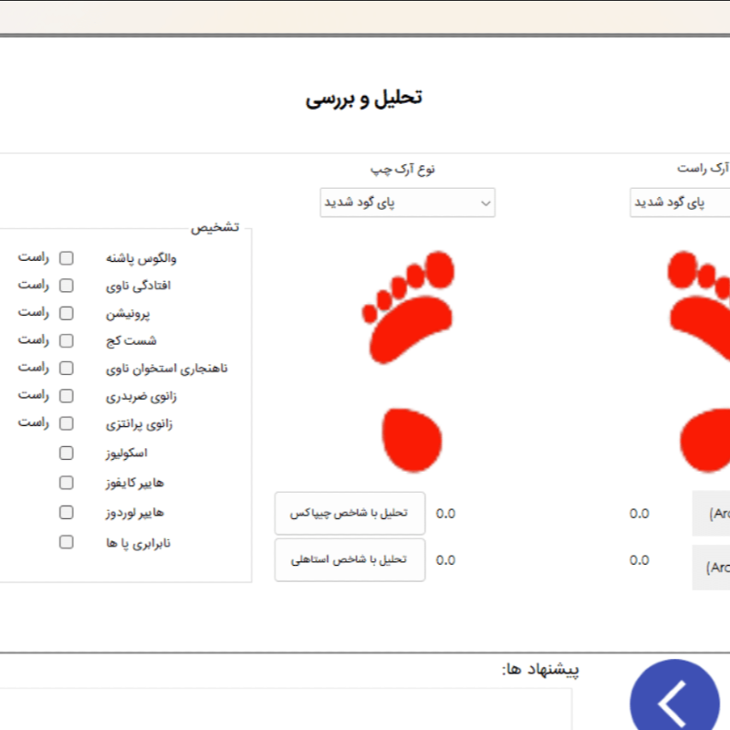 تشخیص و درمان بهموقع ناهنجاریهای کف پا برای حفظ سلامت و پیشگیری از مشکلات جدیتر اهمیت بسیار زیادی دارد. پدوسکوپ هوشمند، با استفاده از فناوری پیشرفته پردازش تصویر و بدون نیاز به مارکرگذاری دستی، به شما امکان میدهد دفورمیتیهای کف پا را بهصورت دقیق، سریع و غیرتهاجمی شناسایی و تجزیه و تحلیل کنید.