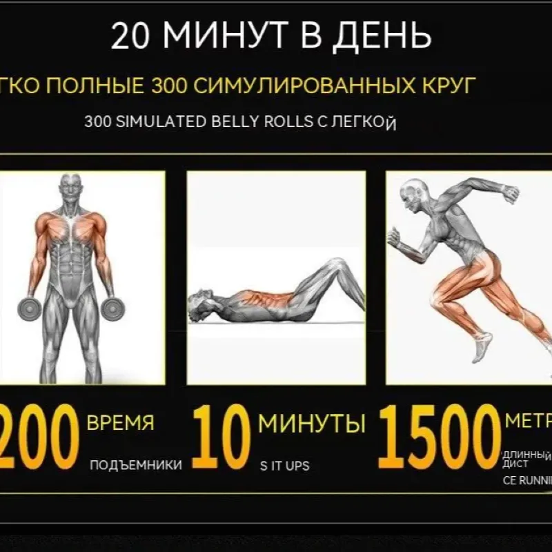 دستگاه تقویت عضله و چربی سوز(EMS) پرتابل با وارد کردن فرکانس هایی ریتمیک و قابل تنظیم با 6 مدل برنامه به صورت مستقیم بر روی عضلات ناحیه هدف کار کرده و همانند فعالیت های شدید بدنسازی عمل می کند. ابعاد پد شکمی 1719 و پد های بازویی 207 سانتی متر می باشد. این محصول در مجموع دارای 3 عدد پد شکمی و بازویی مخصوص در یک دستگاه می باشد.