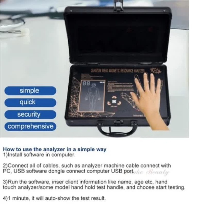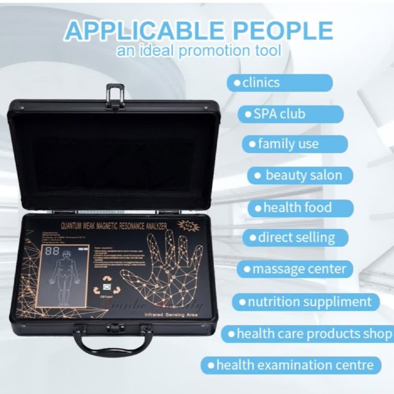 سیگنال های امواج الکترومغناطیسی متساطع ساطع شده از بدن انسان بیانگر وضعیت خاص بدن انسان است و سیگنال های مختلف امواج الکترومغناطیسی دریافت شده درشما را در شرایط سلامت، زیر سلامتی، بیماری ها و غیره نیز منتشر و نمایش میدهد. چنین سیگنال های موج الکترومغناطیسی خاصی را می توان با شرایط زندگی خود تجزیه و تحلیل کرد.