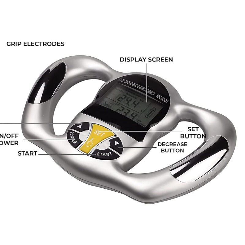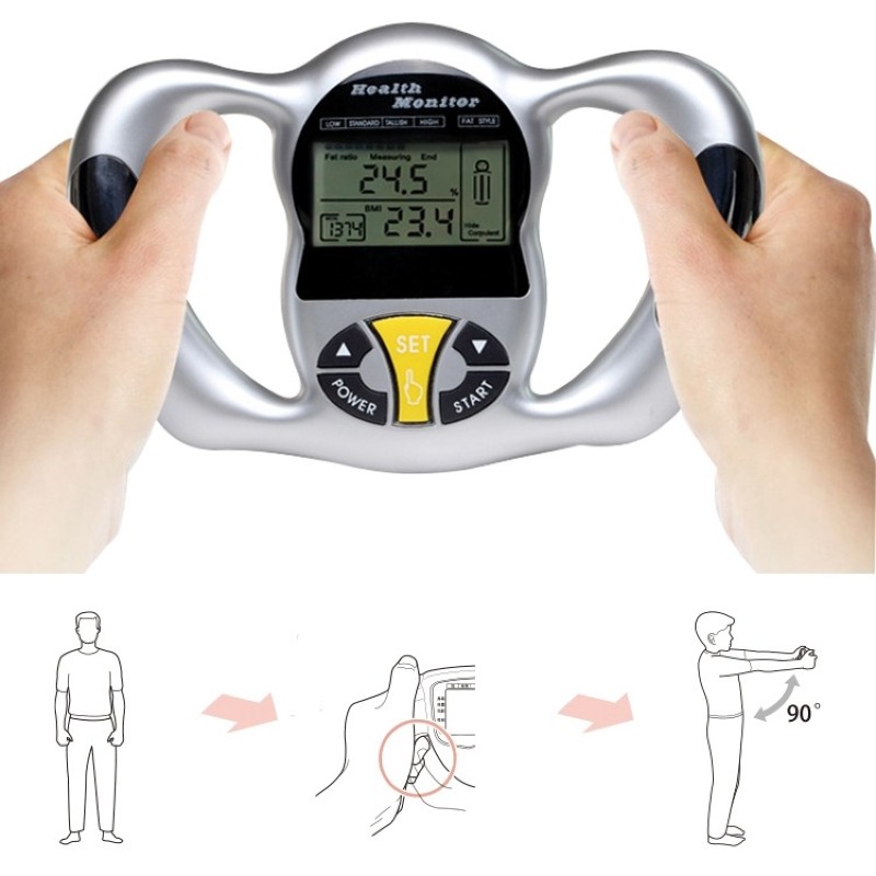 شما فقط باید دستگاه را در دست بگیرید و قد، وزن، سن و جنسیت خود را وارد کنید. سپس دستگاه BMI شما را اندازه گیری و محاسبه می کند، سپس ارقام بدن شما را در LCD نمایش می دهد. چربی سنج دستی می تواند درصد چربی بدن، BMI، شکل بدن و متابولیسم اولیه شما را اندازه گیری کند و آن را ذخیره کند. همچنین بعد از تنظیم مشخصات شخصی خود, حافظه نظارت را سریع و آسانتر می کند.